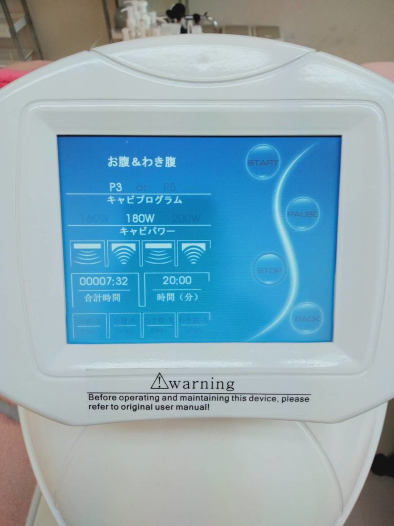 約517KHzで、110mW/c㎡は、脂肪を分解するホルモン「ノルアドレナリン」を放出することが実証されている美容機器です。
